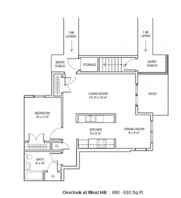 Beds: 1, Baths: 1, SQFT: 690